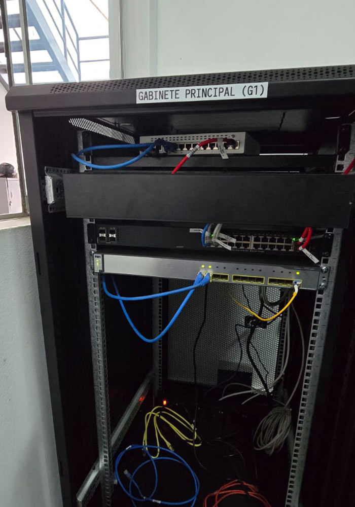 Implementación de cableado estructurado Cat6A para red WiFi y datos.