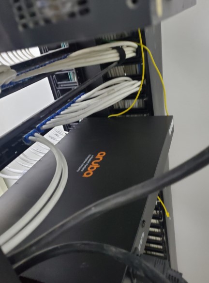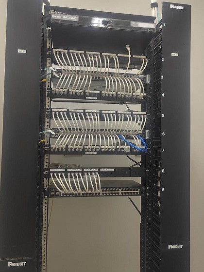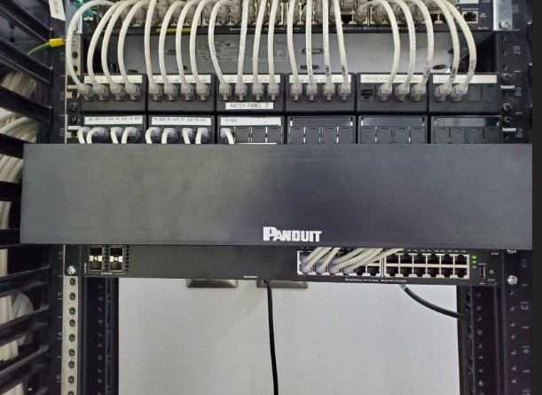 Distribución de equipos en gabinete de comunicaciones en data center.